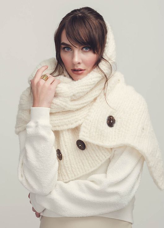 Шикарный объемный шарф Demetria вязаный из великолепной мягкой пряжи в который так приятно укутаться в холодный зимний день. Простая застежка на пуговицы на концах превращает длинный шарф в бесконечный шарф, который можно носить дважды свернув создавая уютный и теплый капюшон-снуд. Объемные косы мягкие, расслабленные и слегка смещенные, чтобы исключить зазоры получающиеся при вязании объемной косы. Резинка позволяет создать двухстороннее полотно, которое одинаково красиво смотрится с обеих сторон.