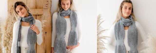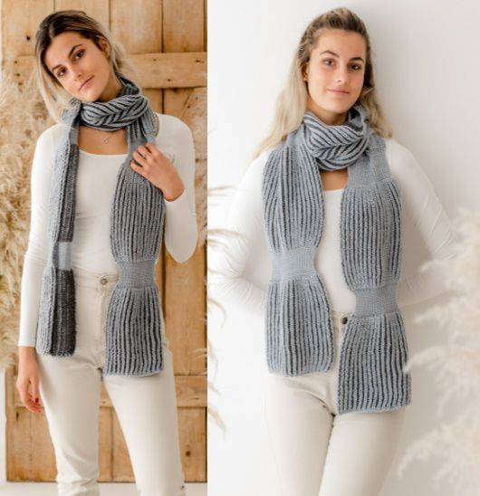 Теплый вязаный шарф Montbrun выполнен двухцветным узором бриошь.