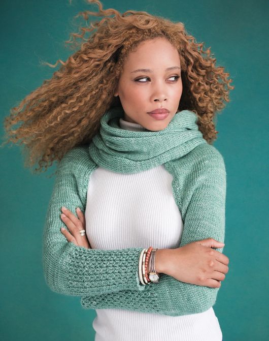 Оригинальная вещь - длинный вязаный шарф с рукавами. Швы рукавов сшиваются, а остальная часть изделия остается открытой. Эту универсальную вещицу можно носить как шраг или как шарф, а можно обернуть вокруг тела.
