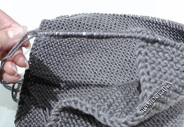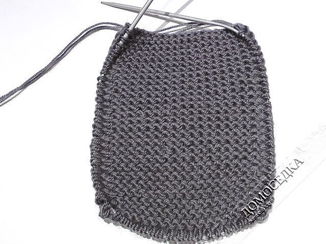 Далее продолжить платочной вязкой 70 рядов (35 рубчиков).