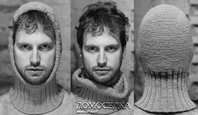Вязаный шлем от Franklin Habit для молодого человека выполнен спицами.