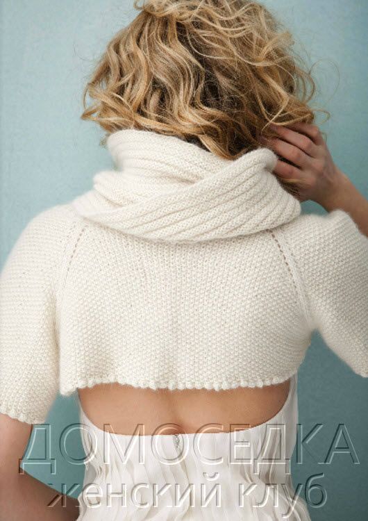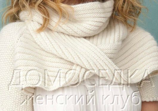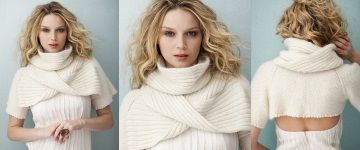 Оригинальный вязаный шраг от Cathy Carron выполняется спицами особым образом: сначала вяжется длинный шарф, затем спинка и рукава реглан.