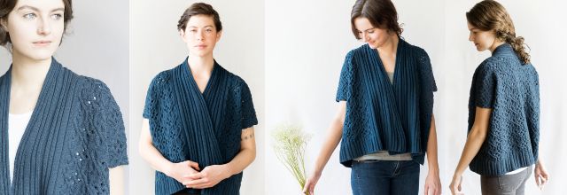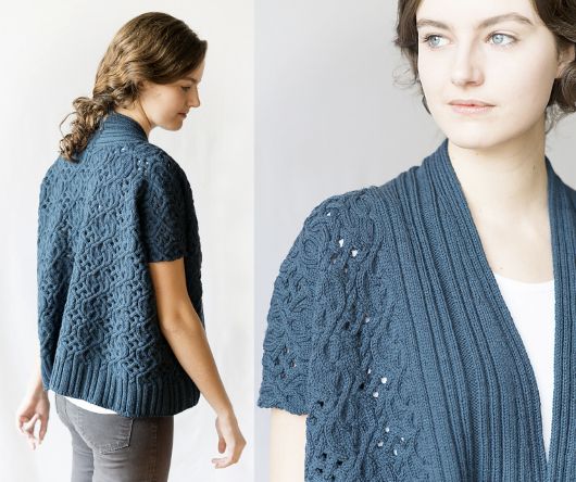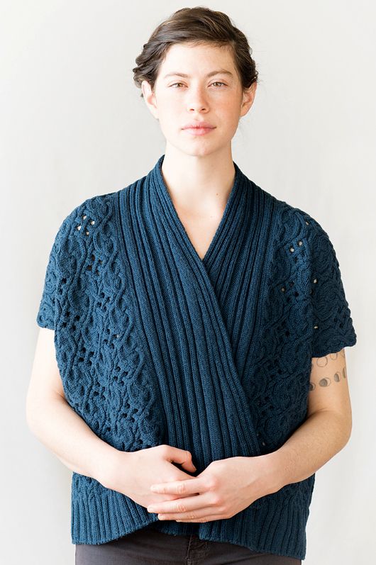 Вязаный спицами шраг Circlet с великолепными косами, внутри которых заключены элементы ажурного узора. Этот Шраг, свободного силуэта оверсайз, вяжется прямыми рядами, начиная с передних сторон вместе с воротником, затем детали соединяются для выполнения спинки. Петли воротника закрываются тремя спицами. Боковые швы соединяются в самом конце.