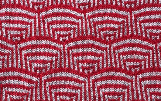 26 петель и 43 ряда = 10 х 10 см узором кубов на спицах большего размера поле блокировки.