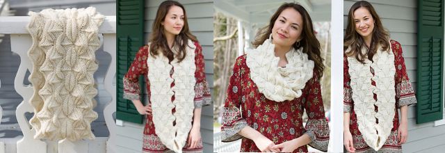 Скульптурный, полностью текстурированный вязаный спицами снуд Jamberoo от Tonia Barry.