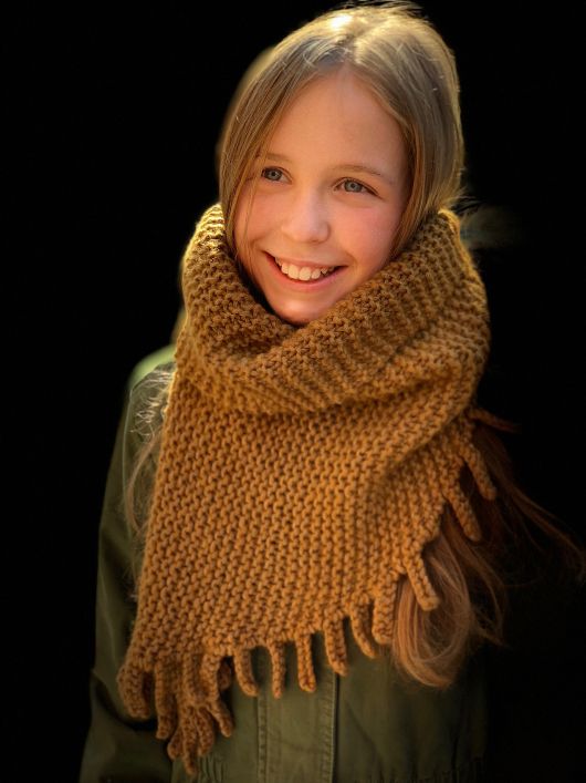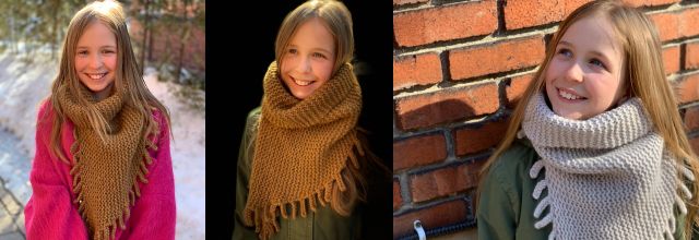 Quast - это игривый вязаный снуд с бахромой. Его форма надежно защитит вашу шею даже тогда, когда ваше пальто не застегнуто на все пуговицы. Снуд вяжется прямыми рядами одновременно с бахромой и соединяется в круг при закрытии петель.