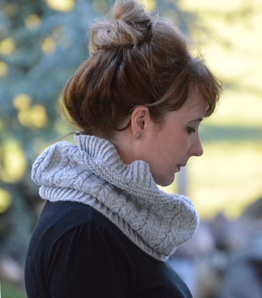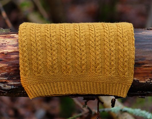 Вязаный спицами снуд Vignette выполнен по кругу узором из перекрещенных косичек.