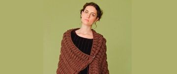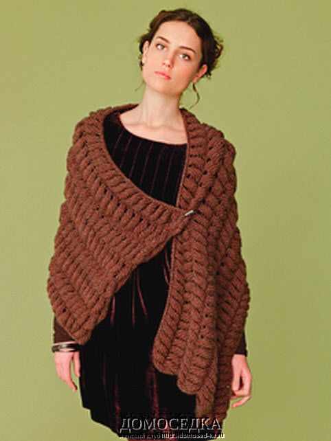 Вязаный спицами палантин Wendy Wrap от Julia Frank выполнена спицами оригинальными косами.
