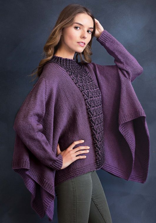 Вязаный спицами пончо-пуловер