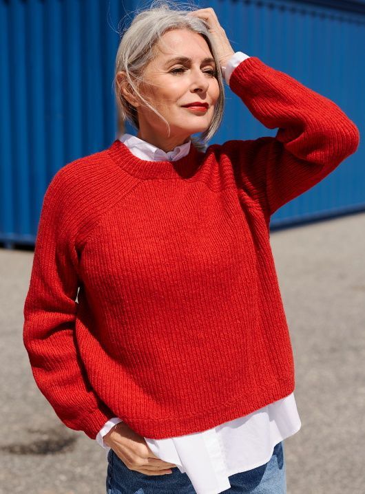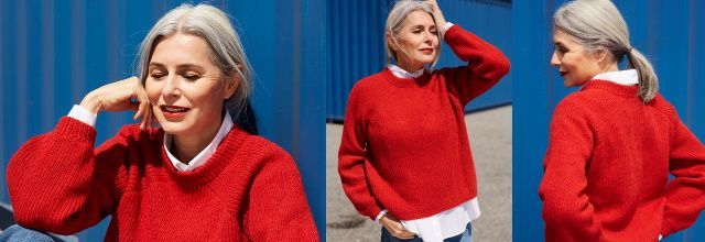 Мощный красный цвет пряжи «Piment», напоминающий перец чили послужит отличным источником энергии в серые дождливые дни. Или вы предпочитаете ваш любимый цвет? Что бы Вы ни выбрали - Iuvat - это свитер, который быстро станет фаворитом. Его легко и интересно вязать. Минималистский дизайн идеально подходит для начинающих, которым не терпится примерить свой первый свитер реглан, но и опытным вязальщицам свитер будет интересен, как облегченный вариант между сложными проектами. Широкий прямой силуэт определяет его современный вид, а смелый выбор цвета привнесет свежесть в ваш гардероб. Вяжется свитер сверху вниз по кругу. Набрав петли, перейти к формированию модифицированного реглана, а у проймы петли рукавов отложить. После завершения корпуса и рукавов перейти к выполнению воротника, для него предусмотрено несколько вариантов.