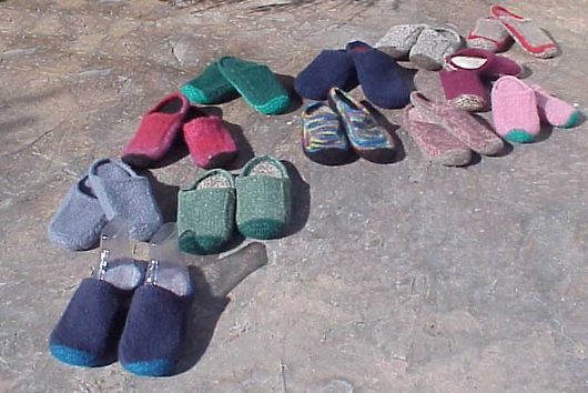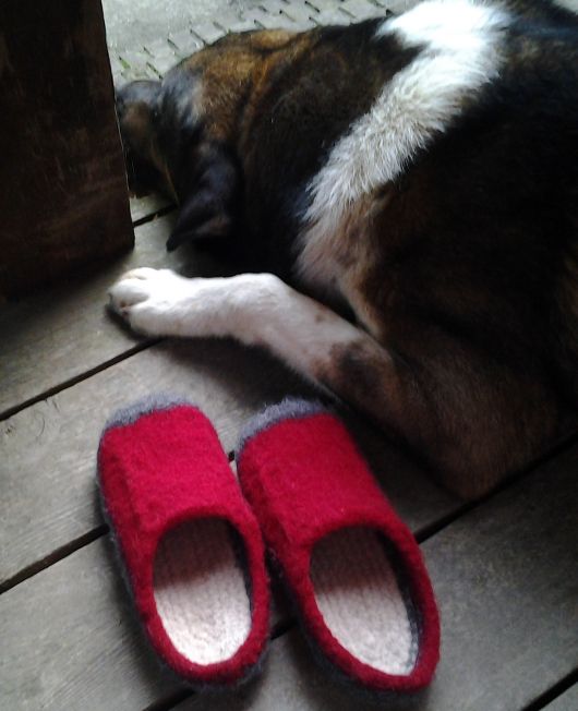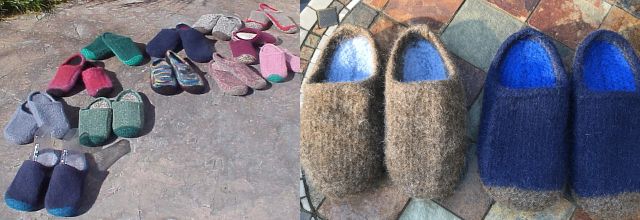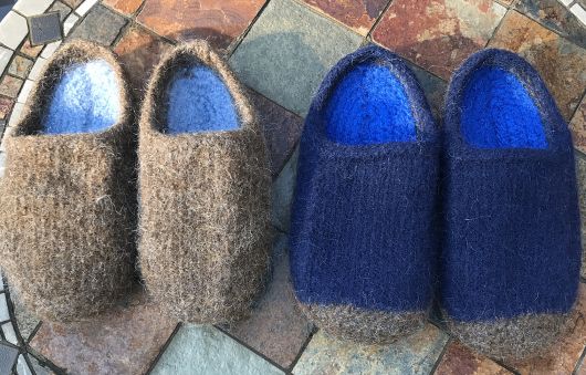 Вязаный войлочные тапочки EasierClogs идеально подходят для всех членов семьи. Эти тапочки довольно быстро вяжутся из шерстяной пряжи в две нити. Сначала выполняется наружная подошва, затем внутренняя и после, обе соединяются. Затем вяжется верхняя часть. В конце выполняется шов. После того как тапочки будут связаны их нужно постирать в машине. Инструкция процесса валяния дана в описании.