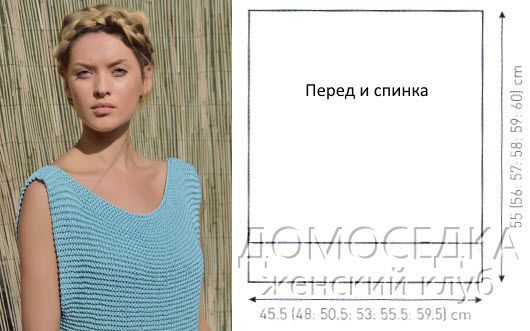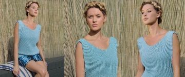 Летний вязаный топ Lagoon от Kim Hargreaves выполняется спицами простой платочной вязкой.