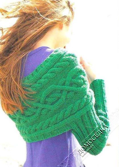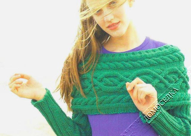 Ультрамодный вязаный воротник с рукавами выполнен спицами простым и красивым узором из аранов.