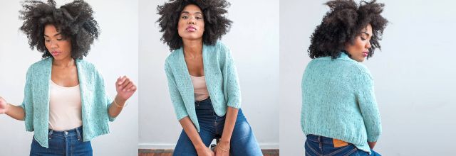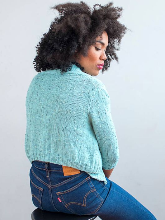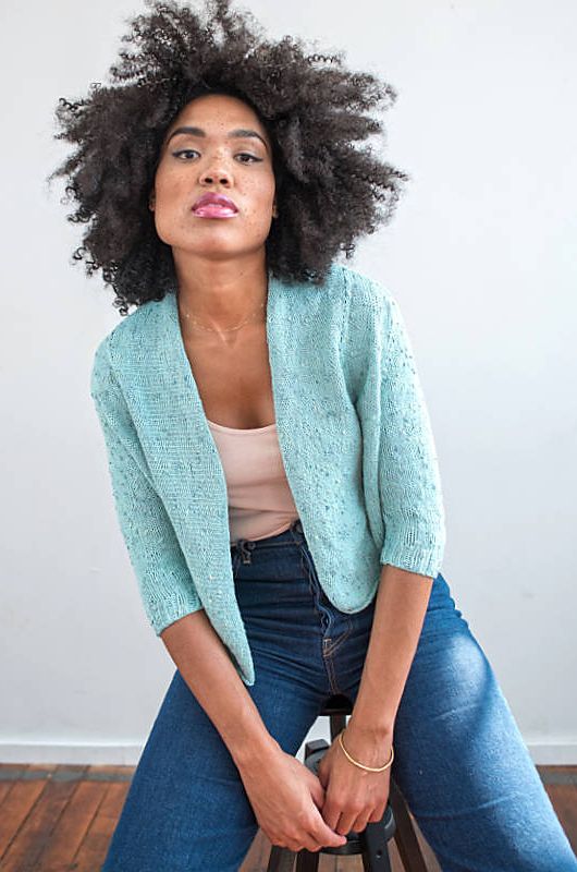 Актуальный вязаный спицами женский жакет Cornish слегка расширенного укороченного силуэта, с рукавами длиной ниже локтя, острым вырезом горловины и полочками без застежки по форме напоминает болеро. Планки полочек образуют широкий шалевый воротник. Эта модель вяжется снизу вверх поворотными рядами из отдельных деталей, которые затем сшиваются вместе. Наденьте его поверх летнего платья или топа, и вы готовы к прогулке теплым летним вечером.