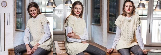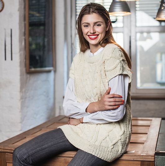 Уютный вязаный жилет Aranmuster выполнен из довольно толстой шерстяной пряжи арановыми узорами из кос и ромбов. Этот жилет незаменим в холодное время года. Традиционная простая и непринужденная модель.