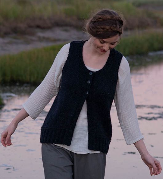 Универсальный вязаный жилет AutumnShoreline на пуговицах дополнит любой наряд и завершит стильный образ. Он выполнен единым полотном снизу вверх. Нижняя планка жилета формируется укороченными рядами, а плечи соединяются между собой при помощи трех спиц.