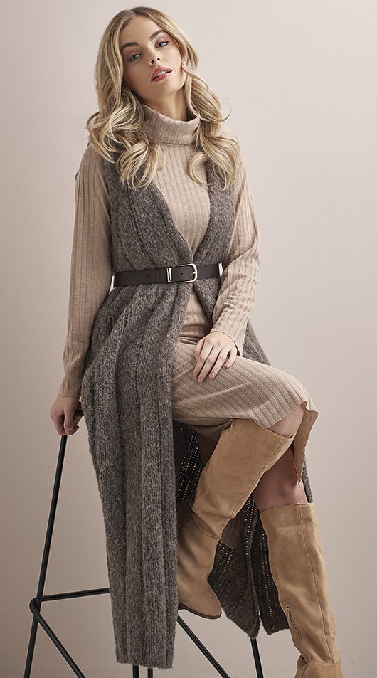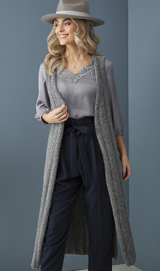 Удлиненный вязаный спицами жилет Sleeveless – роскошное пополнение гардероба, которое завершит ваш безупречный и стильный образ. Он выполнен широкой резинкой, вертикальные линии которой придадут дополнительную стройность фигуре. Жилет выполнен снизу вверх без швов из двух отдельных деталей, которые затем сшиваются вместе.