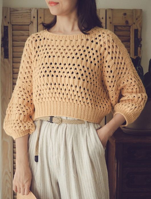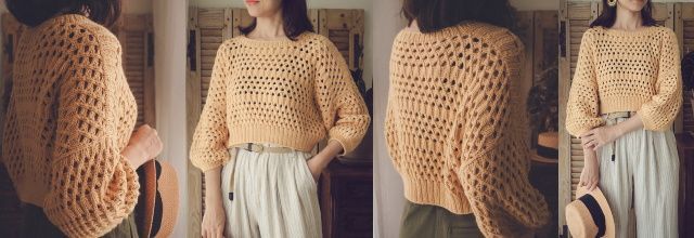 Расход пряжи приведен для версии с рукавами 3/4, если вы решите удлинить рукава, вам понадобится дополнительная пряжа.