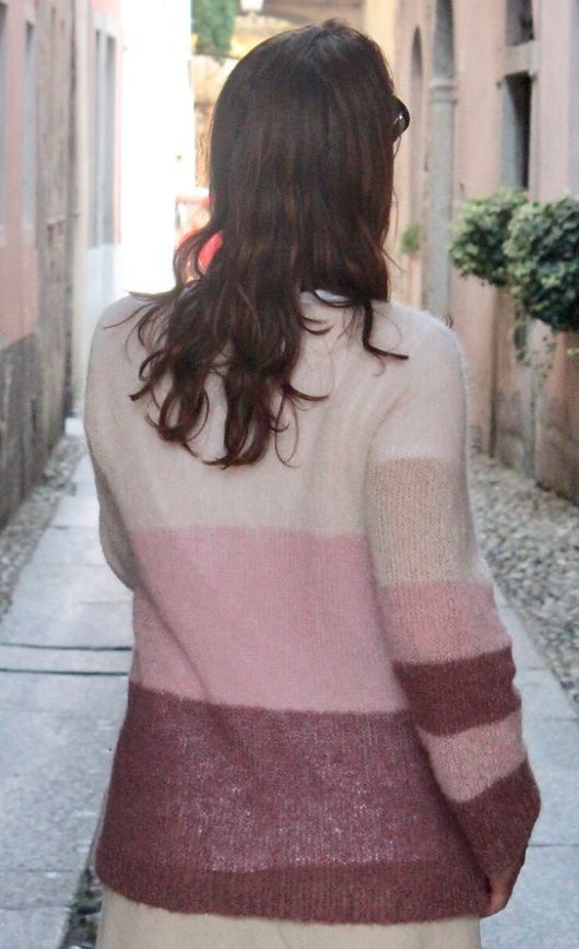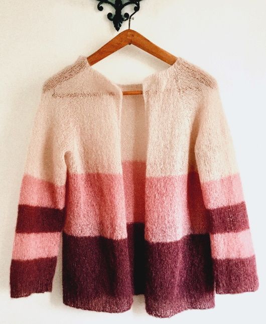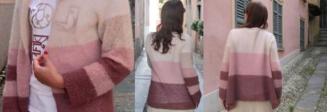 Легкий и воздушный вязаный кардиган IceCream выполняется поворотными рядами сверху вниз. Цветовой переход широких полос от темного к светлому добавляет ритм лаконичному дизайну.