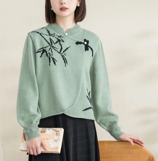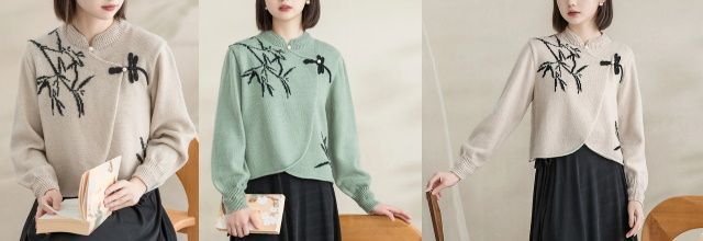 Изящный кардиган BambooShadow (Тень бамбука) связан спицами отдельными деталями, которые сшиваются. Его отличительные черты — узор напоминающий бамбуковую листву, V-образный вырез горловины и застежка на пуговицы. Описание составлено для двух размеров S и L.