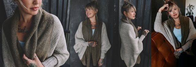 В гардеробе каждой женщины нужен Большой Уютный кардиган, который можно носить круглый год! BigCozy в форме кокона связан текстурным узором и максимально уютен благодаря воротнику из пряжи Baby Suri с содержанием альпаки! Кардиган связан снизу вверх с небольшим количеством швов для формирования проймы. Для шалевого воротника и манжет рукавов петли поднимают и провязывают по телу кардигана. Если ваш размер находится между размерами, рекомендуется вязать меньший размер.