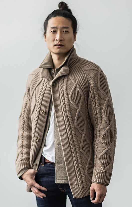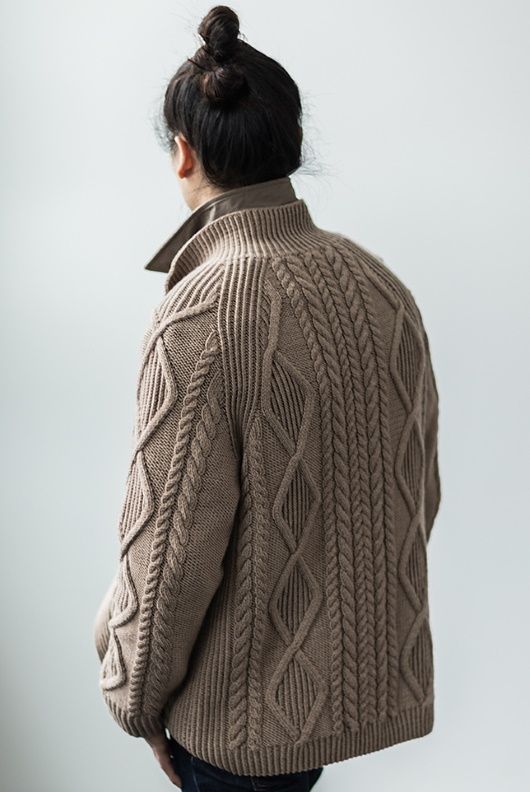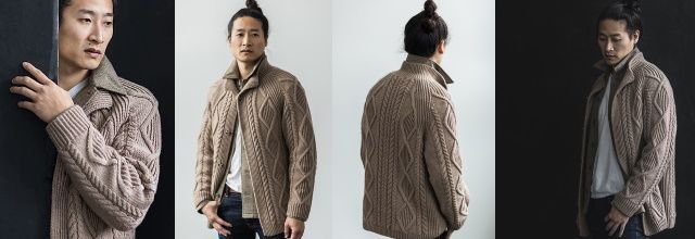Роскошный вязаный кардиган Fisker выполнен отдельными деталями, которые в конце сшивают. В описании приведены инструкции, как для мужского, так и для женского кардигана. Женская версия укорочена по низу изделия и рукавам, со слегка зауженным воротником.