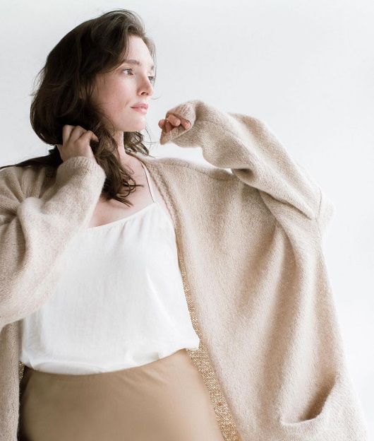 Классический вязаный кардиган Henningsen имеет квадратный силуэт со спущенными плечами и открытыми полочками.Перед, спинка и рукава кардигана связаны прямо снизу вnверх, начиная с узора резинки для нижних частей. Узор «Рис» на планках полочек вяжут одновременно с деталями переда.