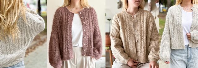Вязаный кардиган Sera может быть связан в двух разных направлениях: снизу вверх, начиная с низа и сверху вниз, начиная с плечевых скосов. Рукава, планки и горловина являются общими деталями для обоих методов. Метод "снизу вверх" предусматривает формирование горловины спинки, что обеспечивает большую свободу облегания вокруг выреза горловины и облегчает работу с изделием. Сшивание не требуется. Метод "сверху вниз" можно примерять во время вязания, что облегчает регулировку длины изделия.