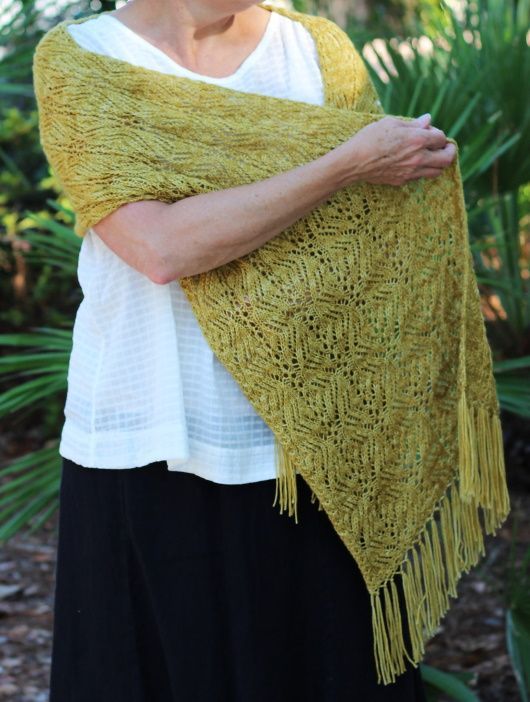 Косички и ажур сочетаются, создавая красивые изгибы в ажурном палантине Shalimar. Великолепная смесь пряжи, делает этот палантин поистине роскошным. Палантин вяжется цельным полотном от одного края до другого, с бахромой по краю, которую добавляют в последнюю очередь. Этот узор включает в себя ажурные узоры с обеих сторон работы и простые косички. Размер можно изменить, используя другую по весу пряжу и/или регулируя количество горизонтальных/вертикальных повторов. Количество петель можно добавить или убавить при наборе петель кратно 30 и вязать больше или меньшее вертикальных повторов. Изменения в плотности вязания и/или повторах повлияют на необходимое количество пряжи.