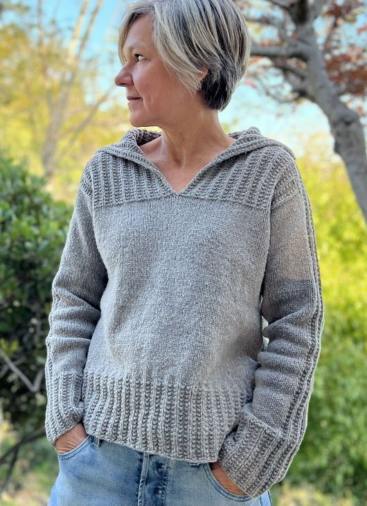 Пряжа: Worsted weight yarn в количестве, указанном ниже; показана пряжа De Rerum Natura Robinson (70% меринос, 30% хлопок; 250 м/100 г); цвет 'Loutre'