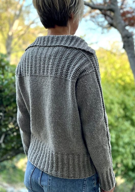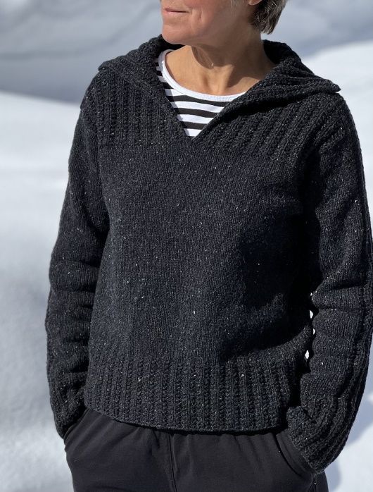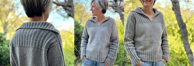 Пуловер Cliffhanger вяжется сверху вниз, без швов. Сначала вяжется воротник. Затем вяжутся панели каждого плеча и верхние секции полочек, которые формируются поднятием петель по боковым сторонам панелей плеч. Верхняя часть спинки так же формируются от петель, поднятых по панелям обоих плеч. Петли для рукавов поднимаются по вертикальным краям деталей, и впоследствии вяжутся с петлями тела пуловера по кругу с одновременным формированием угловой части проймы. Затем петли рукавов откладываются и вяжется тело пуловера. В заключение выполняются рукава.