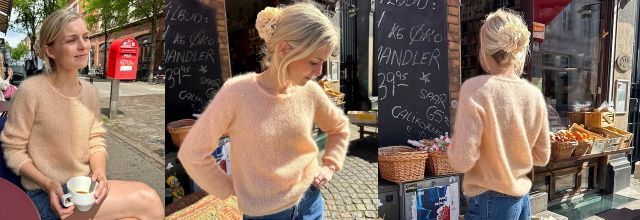 Пряжа: 150-175 (175) 200 (200) 225 (225) 250 (250) 275 г Brushed Lace от Mohair by Canard (25 г=210 м [230 ярд.]) или Silk Mohair от Isager Yarn (25 g = 212 м [232 ярд.]) или Tynn Silk Mohair