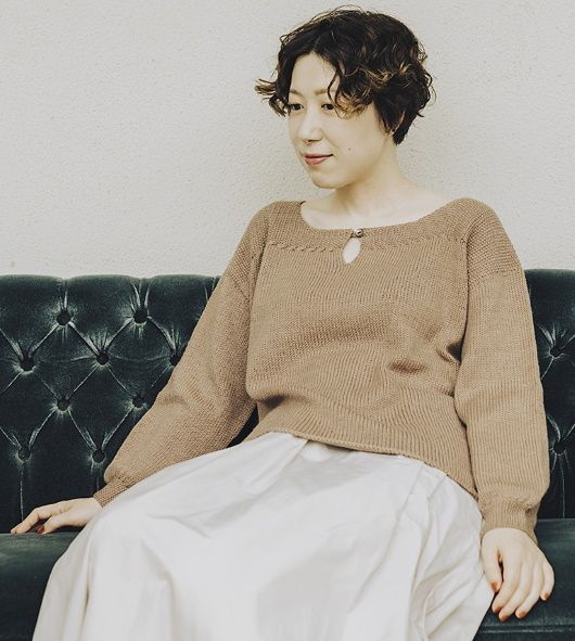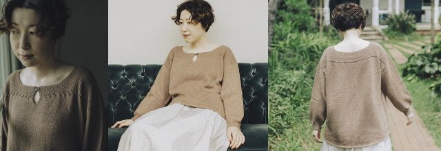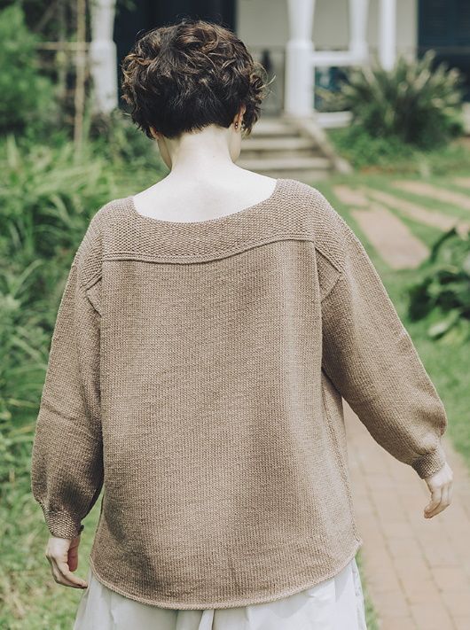 Вязаный пуловер Swingin с милой кокеткой и застежкой-капелькой. Пуловер начинают с выполнения плечевых скосов спинки прямыми рядами. Плечевые скосы переда вяжут отдельно и затем соединяют с разрезом по переду. Тело соединяют на уровне подмышек и вяжут его по кругу. Низ формируют с помощью немецких укороч. рядов для создания изгиба на спинке. Для рукавов поднимают петли вокруг проймы, окат рукава формируют укороч. рядами перед вязанием рукава по кругу до манжеты. Манжету вяжут прямыми рядами для формирования разреза. В конце пришивают пуговицы и петлицы к разрезу переда и манжетам на обоих рукавах.