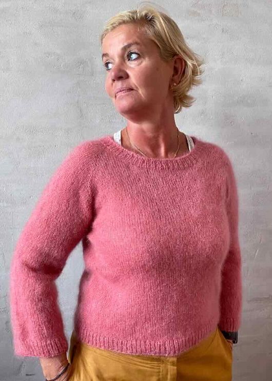 Emmeline — простой классический свитер с кроем реглан, который подойдет любому уровню навыков вязания. Он связан в две нити пряжи Önling комбинации мохера и шелка, что обеспечивает удивительно легкую текстуру почти для всех сезонов года. У модели довольно обычная посадка, не узкая и не свободная, с припуском на свободу облегания около 5 см. Обычная глубина проймы и рукава длиной 3/4. В описании также даны указания для рукавов полной длины. Корпус немного укороченный, но длину, конечно, можно легко отрегулировать по вашему желанию. Вы также можете связать Emmeline в одну нить шерстяной пряжи и ваш собственный окончательный вариант дизайна может быть изменен, например, путем изменения длины корпуса и рукава, и, конечно, размера припуска на свободу облегания.
