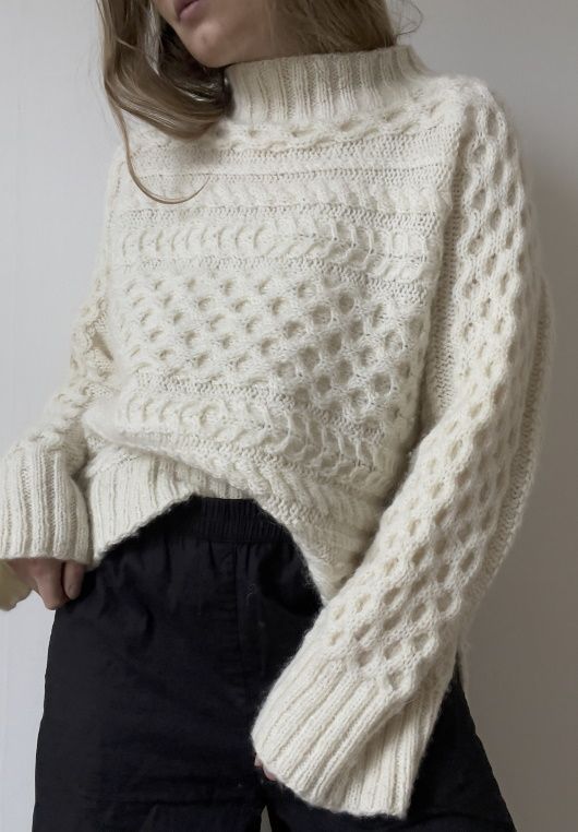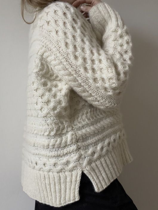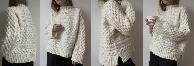 Вязаный свитер Eurus - это современная интерпретация классического свитера. Благодаря объемному силуэту и традиционным узорам, он наверняка станет вечным фаворитом вашего гардероба. Свитер выполняется в поперечном направлении, начиная от рукава. Затем вяжется тело с формированием горловины. После выполняется второй рукав. В завершение набираются петли для горловины и для окантовки по нижнему краю.
