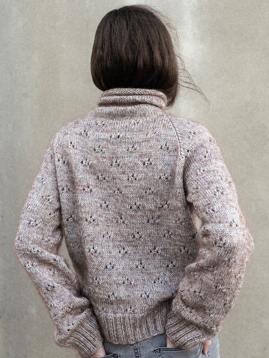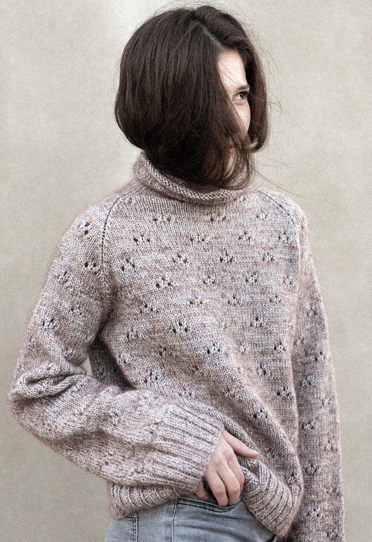 Вязаный свитер FoxySteps выполнен по кругу снизу вверх несложным узором. Сначала вяжется тело, затем рукава. После, все детали объединяются в кокетку, которая выполняется регланом с убавлением петель.