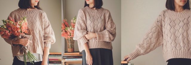 Свитер на фото показан в размере 1, пряжа оттенка Quartz