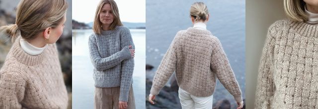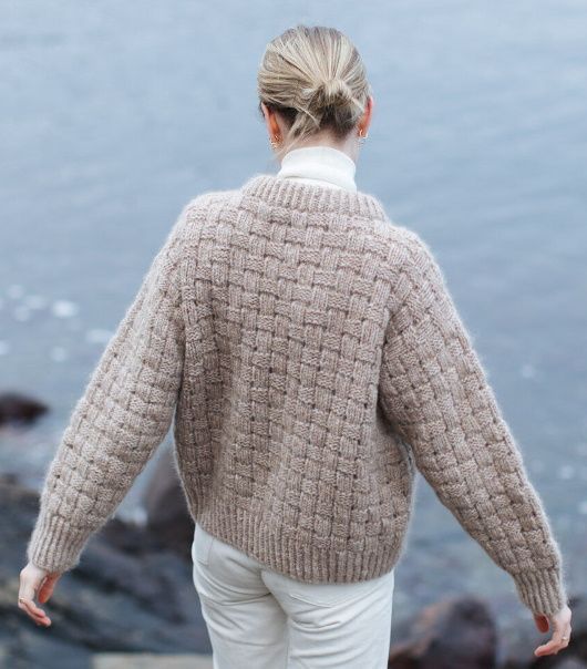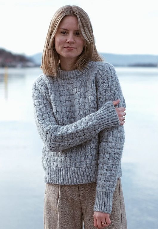 Вязаный свитер Korshavn выполнен снизу вверх узором плетенка. Свитер оверсайз с припуском на свободу облегания около 20-25 см (то есть больше вашего реального обхвата груди).