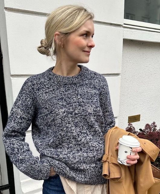 Свитер Melange связан из двух тонких нитей шерстяной пряжи контрастных цветов, удерживаемых вместе для создания мраморного или “меланжевого” вида. Начните с вязания образца, чтобы определить, спицы какого размера дадут вам нужную плотность вязания.
