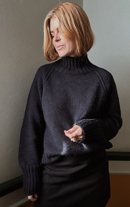 Классический вязаный свитер No9Light с рукавами реглан и высоким воротником ребристым узором. Всегда актуальная и элегантная вязаная вещь с красивой драпировкой и удобной свободной формой. Вырез горловины формируется укороченными ряда-ми после завершения воротника резинкой. Поскольку свитер вяжется сверху вниз, то Вы можете во время работы его примерять.