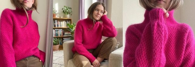 На фотографиях свитер Poppo связан из Pura Lana цвет Candy (432) и Kid Seta цвет Ultrapink (1108).