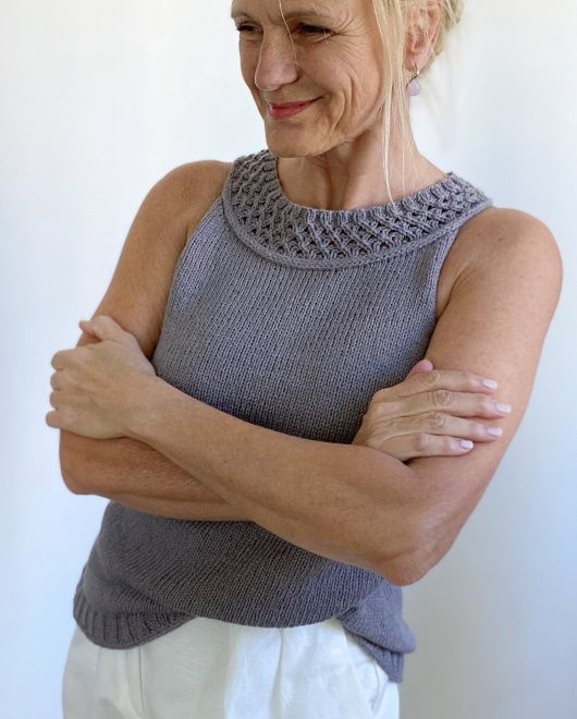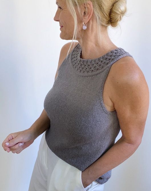 Летний вязаный топ BigChainс эффектным узором цепочкой. Топ вяжется сверху вниз.