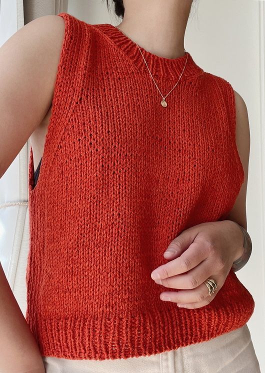 Montpellier – это летний вязаный топ, который выполняется сверху вниз. Сначала вяжется спинка, затем поднимаются петли для формирования плеч и горловины. Петли с каждой боковой стороны вяжутся резинкой. Затем петли переда и спинки соединяются на и тело вяжется по кругу лицевой гладью при этом узор резинкой продолжается. Тело завершается планкой резинкой, за-тем поднимаются петли для планки горловины. Планка также вяжется резинкой.