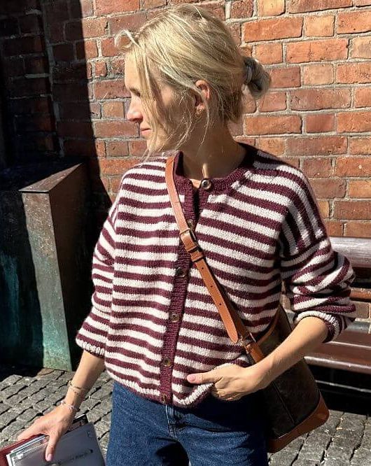 Вязаный жакет Olga выполняется полосками сверху вниз. Сначала кокетка сзади вяжется поворотными рядами, при этом наклон плеч формируется короткими рядами и полосками, которые вяжутся одновременно. Затем каждое плечо вяжется поворотными рядами. Кокетки спереди и сзади соединяются в области подмышек, образуя корпус, которая вяжется узором с полосками поворотными рядами. Рукава петли поднимаются из проймы и вяжутся вкруговую. В конце вяжутся планки горловины и полочек. Жакет рассчитан на припуск на свободу облегания около 23 см для меньших размеров и постепенно уменьшающийся припуск на свободу облегания для больших размеров.
