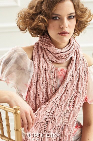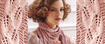 Вяжем красивый ажурный шарф узором из листьев с дорожками из спущенных петель.