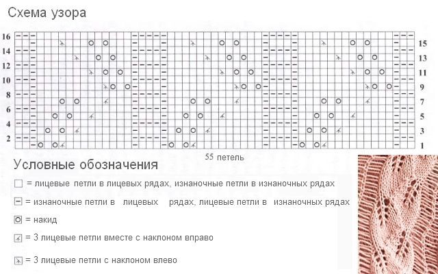 Плотность вязания 24 п. и 32 р. = 10х10 см.