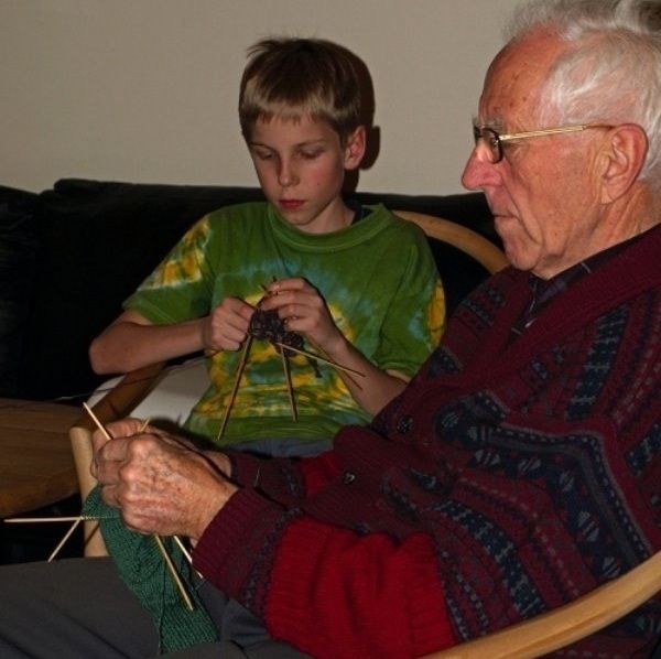 А этот мужчина, видимо, уже опытный рукодельник... Вон сколько уже связал!