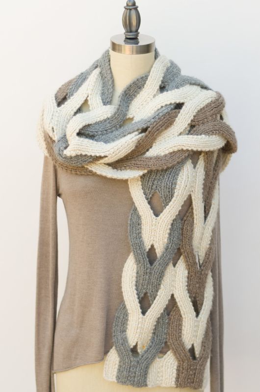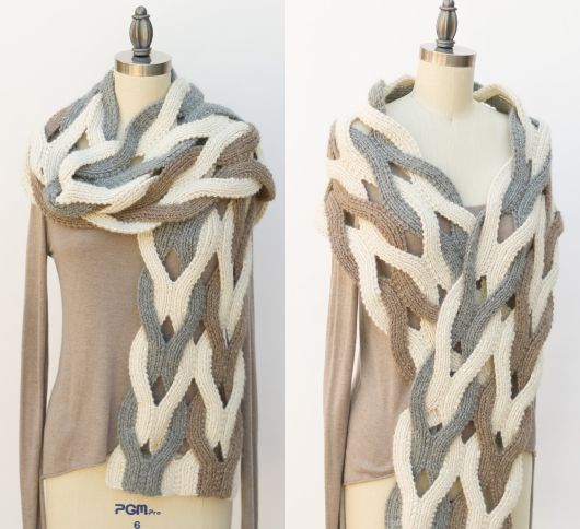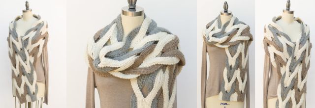 Роскошный трехцветный палантин от Пам Пауэрс выполнен двухсторонним узором в технике японские косы.