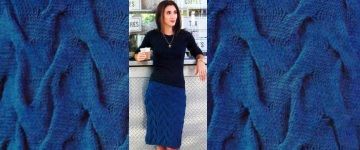 Вязаная юбка выполнена спицами круговыми рядами единым полотном из кос. Схема и описание.