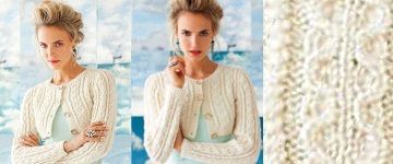 Жакет болеро от Sarah Hatton выполнен спицами классическим узором из аранов.